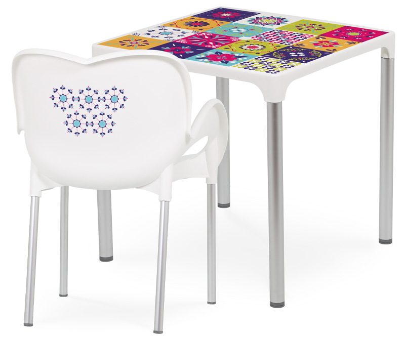 De inspiração na azulejaria portuguesa, o conjunto Mosaic procura disseminar a cultura portuguesa através da representação do azulejo e das suas cores tão características. Por outro lado, explora-se também a portugalidade através da personalização com expressões e ícones locais. Neste caso em concreto aborda-se Portugal de forma generalista contudo, é possível personalizar com ícones e expressões características de cada região a que o produto se destina se assim for pretendido.
